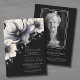 Celebra la vida de tu ser querido con esta elegante invitación al servicio conmemorativo de la Celebración de la Vida. Este diseño presenta un sofisticado fondo negro con una elegante mezcla de flores negras, grises y crema. Las fuentes son de color blanco roto y utilizan una combinación de tipografía de guiones y letras serif clásicas, proporcionando un aspecto refinado, clásico y de buen gusto. Ideal para un funeral, funeral o reunión de recuerdo, esta invitación incluye espacio para el nombre, fechas y una sección para compartir recuerdos o un obituario en la parte trasera. Puede personalizar todo el texto a su información e incluso cambiar el color de fondo si es necesario. Además, el diseño permite una foto en la parte posterior, que se puede establecer en un filtro en blanco y negro para un toque especial, aunque se puede modificar en la configuración completa del editor. Elegante Guión Floral Blanco Y Negro Celebración De La Invitación A La Vida Para Servicio Funeral O Memorial. Disponible en forma de invitación impresa, o como una invitación digital descargable que puede enviar por correo electrónico o que ha impreso localmente.