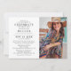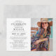 Una elegante y sencilla invitación de Celebración de la vida Funeral con una fotografía de su ser querido, un fondo blanco clásico que se puede cambiar a cualquier color, y tipografía moderna y elegante. Personalice fácilmente la plantilla de celebración de la vida con sus propios detalles y fotografía de su ser querido.