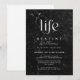 Una bella y elegante celebración falsa de mármol negro de la invitación al funeral de vida y la invitación. Tipografía minimalista y elegante del corazón "Celebración de la vida" con un sencillo fondo de mármol blanco.
