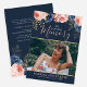 Personalizar esta moderna y elegante invitación al servicio funerario/conmemorativo con tu propia foto y texto para crear un despido especial a tu ser querido. Una invitación a "In Loving Memory" con un fondo azul marino de bonito con flores de peonía azul turbio rosa y azul oscuro con un follaje falso de Relieve metalizado dorado como decoración. En la parte delantera hay una foto de su ser querido, su nombre y fecha y al revés hay un lugar conmemorativo, fecha del evento, detalles del RSVP, etc. El texto es una combinación de escritura caligráfica manuscrita y fuente serif cursiva. Todo el texto es fácilmente editable. Si necesitas ayuda para personalizar esto, por favor envíame un mensaje usando el botón de abajo y estaré encantado de ayudarte. En mi tienda de zazzle también hay material de oficina que coincide con la compasión.