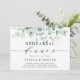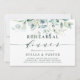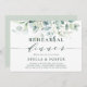 La invitación a la cena es un ensayo con eucalipto de color agua pintado, hojas verdes botánicas y azules claras con caligrafía moderna. Para una personalización más avanzada de este diseño, haga clic en el enlace "Personalizar más adelante".