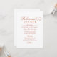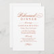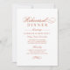 El diseño formal de la invitación a la cena de los bodas naranjas de terracota presenta una hermosa tipografía que combina un guión tradicional de caligrafía floreciente con letras clásicas en bloques. Incluye un acento de diseño de desplazamiento decorativo. El texto personalizado puede ser totalmente personalizado para el evento especial. Por favor, compre nuestra colección de Bodas Naranjas de Terracota Clásico Elegante para coordinar diseños.