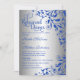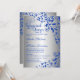 © Socialite Designs. Una elegante invitación real azul y plateada con magníficos remolinos decorativos en esquina listos para ser personalizados para su evento especial. El estilo de fuente, el texto y el tipo de papel se pueden cambiar. ¿Necesita AYUDA con la personalización o productos adicionales con este diseño? Por favor no dude en ponerse en contacto con los diseños socialitas.