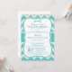 Elegante invitación para una fiesta de limpieza con un patrón de chevron verde azulado, azul claro y color crema-blanquecino. Invitar características clave de esqueleto y gráficos de aspecto vintage formales.