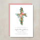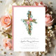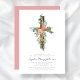 Invitación Elegante Chica de Cruz Floral Rosa Primera Comunió