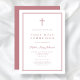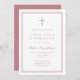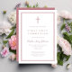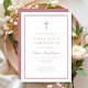 Invitación Elegante Chica de Cruz Rosa Primero Santa Comunión