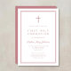 Elegante Chica De Cruz Rosa Primero Invitación A La Sagrada Comunión.