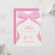 Elegante Bow Rosa Coquette Primer Invitación Chica de cumpleaños