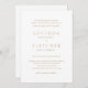 Elegante faux gold todo en una invitación a la boda con un diseño simple y mínimo con los nombres de la novia y el novio en un tradicional tipo de letra serif y los nombres medio y último en un elegante guión de caligrafía. La parte trasera tiene los detalles de tu invitado. Un estilo clásico perfecto para un boda formal.