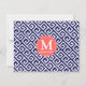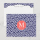 Motivo moderno de clave geométrica gris azul oscuro y blanco oscuro de la marina. Elegante diseño, presenta su monograma personalizado sobre un marco elegante de coral.