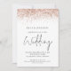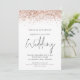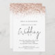 Elegante código QR con brillo en oro rosa para boda. Agregue su código QR en el reverso de su sitio web de boda para que sea una opción conveniente para que sus invitados respondan y vean todos los detalles sin necesidad de tarjetas de RSVP y detalles separadas. O puede eliminar esto si no es necesario. Un conjunto de escritura a mano para la boda y el resto del texto se puede personalizar fácilmente, con un borde de brillo falso en oro rosa en el borde superior en ambos lados.