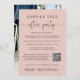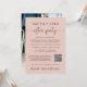Anuncio de boda íntima o privada y de recepción o celebración de boda en elegante tono rosa. "Happily Ever After Party" está escrito con una mezcla de tipografía simple y una elegante letra con florituras. Personalice su anuncio e invitación, cree un código QR vinculado a su sitio web de boda para que sus invitados lo escaneen y respondan en línea, y agregue sus nombres en una letra parecida a una firma. El reverso presenta su foto de boda, sus nombres y las fechas de la boda y la recepción.