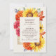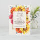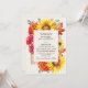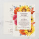 Establezca el escenario para un evento elegante con la invitación a la boda de otoño. Una exuberante y lujosa invitación a una boda floral con un marco de girasoles, mamáes rojas, lantanas, susanes de ojos negros, hojas de otoño y bayas azules con un fondo crema. En la parte posterior de las invitaciones hay un código QR RSVP y detalles del boda. Es perfecto para una celebración dramática e inolvidable. Son ideales para quienes aprecian el encanto eterno. NOTA: El oro que aparece en este diseño NO es Relieve metalizado REAL.