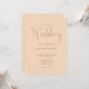 Esta invitación de boda con escritura elegante minimalista en suave tono melocotón puede ser personalizada con tu información en tipografía chic con los detalles de tu sitio web de boda y tu código QR en el reverso. Diseñado por Thisisnotme©