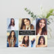 Celebra con estilo elegante con esta invitación de fiesta de graduación en blanco y negro que presenta un diseño limpio de colaje de varias fotos y tipografía elegante. El fondo negro clásico crea un look moderno y atemporal que funciona para cualquier graduado. Este diseño está disponible en múltiples opciones de color, perfecto para combinar con los colores de la escuela o la decoración de la fiesta.