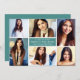 Anuncie su graduación con estilo mostrando sus fotos favoritas de los adultos mayores en el diseño de esta tarjeta de collage de fotos. Personalice la redacción de la parte trasera de la tarjeta para invitar a familiares y amigos a una fiesta de graduación para celebrar la ocasión. El color de fondo verde azul verde azulado se puede personalizar para que coincida con los colores de la escuela o de la foto.