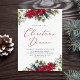 Invite a sus huéspedes a su cena de vacaciones en estilo festivo con nuestras invitaciones a la cena de los Navidades del Elegant Watercolor Poinsettia. La elegante cena Navidad invita a disfrutar de ramos de flores de poinsettia rojo espantada con acuarela, flores blancas, agujas de pino, bayas y hojas verdes. Las palabras "Cena de Navidades" se muestran en un guión de caligrafía roja escarlata con los detalles de la cena que aparecen a continuación. La invitación se invierte a un rojo escarlata sólido. Diseñado para coordinar con nuestra colección de vacaciones Elegant Watercolor Poinsettia.
