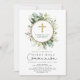 Celebra la primera comunión de tu hijo con esta elegante invitación de temática botánica que incluye elegante color de agua eucalipto verde en verde y oro