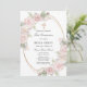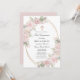 La elegante y femenina invitación a la Primera Comunión presenta hermosas rosas rosas enclavadas en un follaje verde suave decorando un marco dorado oval. Los rosas y las hojas tienen detalles purpurinas para agregar un toque de brillo. Todo el texto es editable, así que también se puede usar para cualquier tipo de ceremonia religiosa, bautismo, cristianismo, dedicación o confirmación.
