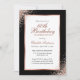 Elegante invitación de cumpleaños en negro y rosa con detalles de cumpleaños dentro de un marco de oro subió adornado con confeti de oro rosa. Invitación de cumpleaños de oro negro y rosa. Invitación de Rosa de cumpleaños de oro. Personalice fácilmente esta plantilla a cualquier fiesta de cumpleaños.
