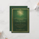 Copo de nieve dorado en invitación a bodas de invierno verde que incluye un copo de nieve dorado sobre fondo verde. Este diseño personalizado es un modelo de personalizable completo y forma parte de un conjunto de bodas perfecto para un boda de Navidades o diciembre de invierno.