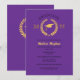 Una invitación refinada y elegante para una fiesta de graduación que presenta un fondo de color púrpura real, incluye una corona de laurel dorada y un icono de gorra de graduación y tipografía elegante. Esta tarjeta emana sofisticación y es perfecta para una celebración formal. Personalice con su propio texto y dirección del evento de la fiesta y celebre su fiesta de graduación.
