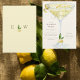 Acuarela Limoncello Boda Invitación a la Ducha. Monograma detrás. Se puede cambiar a ducha de novia. Elegante. Crema y amarillo.