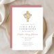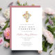 Elegante Editable Cruz de flores rosadas Primera Invitación a la Comunión