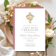 Invitación Elegante Cruz de guirnalda floral rosa Primera Com