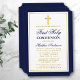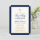 Invitación Elegante Cruz de Oro Azul Primera Santa Comunión