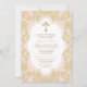 Invitación Elegante cruz de oro Rubor Damask Baby Baptism