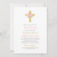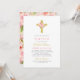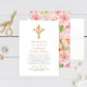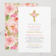 Invitación Elegante Cruz Floral de Oro Rosa Bautizo de Niña