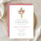 Invitación Elegante Cruz Floral Primera Santa Comunión