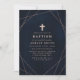 Invitación Elegante Cruz Geométrica de Bautismo en Navy y Ros