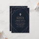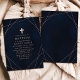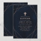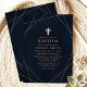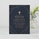 Celebre el bautizo de su bebé con esta elegante invitación que presenta un fondo de color azul marino de medianoche elegante con líneas geométricas en rosa dorado. El diseño minimalista se destaca por una cruz sutil, creando un aspecto sofisticado y moderno. Perfecta para una ceremonia elegante y memorable, esta invitación añade un toque de elegancia y refinamiento a su evento especial. Personalice con los detalles de su evento para crear un anuncio único y personal.