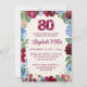 Invitación Elegante cumpleaños 80 - Diseño floral de Borgoña