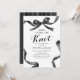 ¡Celebre ese día especial con nuestras encantadoras invitaciones de Despedida de Soltera con Lazo! Con un fondo blanco atemporal, combinado con un clásico lazo de acuarela negra y borde de cinta, el título de la boda 'Ella está atando el nudo', y una plantilla de texto elegante. Exprese su estilo único y haga inolvidable su fiesta de Despedida de Soltera con estas invitaciones chic.
