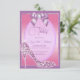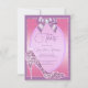 Hermosa, elegante y con clase, invitación de cumpleaños femenina y elegante para mujeres. Diseño de moda de un zapato de tacón alto de lilac con joya de diamante, un lazo de joya de diamante a juego glamuroso y elegante sobre una alfombra de perla vintage y encaje, todo sobre un fondo rosa impresionante y un marco brillante con brillo sobre un borde de color lila oscuro. Diseño de cumpleaños sofisticado adecuado para cualquier evento. Todo el texto, la fuente y el color de la fuente son totalmente personalizables para satisfacer sus necesidades. Si desea ayuda para personalizar su producto o desea productos a juego, por favor contácteme a través de mi tienda y estaré encantado de ayudarle. Alfombra de perla por ©Hazel Kinvig-Paul www.design-a-dream.co.