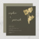Un montón de daffodils floridas de primavera, dibujadas a mano con lápiz de grafito negro y recubiertas digitalmente con oro (Relieve metalizado no real), decora esta elegante, moderna, sencilla y sofisticada plantilla cuadrada de invitación a la boda de primavera que presenta una tipografía moderna, sencilla y minimalista, caligrafía moderna en los nombres de la novia y el novio y un fondo verde de sabio oscuro.