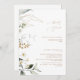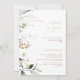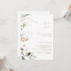 Invitación a la ducha de novia en el jardín botánico. Tipografía de oro. Diseño moderno y fuente. Elegante. Blanca.