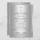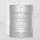Invitación Elegante Damasco plateado y bautismo cruzado/crist