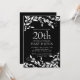 Comience su fiesta de aniversario con nuestra invitación de aniversario de bodas de 20 años que presenta un impresionante acento floral de perla blanca sobre un fondo negro. Invitación perfecta para cualquier aniversario, aniversario de bodas de 30 años, aniversario de 40 años, aniversario de 50 años, aniversario de 10 años, aniversario de 5 años, aniversario de 60 años o aniversario de 75 años.