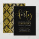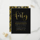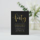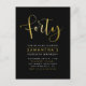 Esta invitación de cumpleaños número cuarenta formal, elegante, moderna y trendy es adecuada para hombres o mujeres. Cuenta con una tipografía estilizada de "Cuarenta" y tipografía simple sobre un fondo negro. En el reverso, hay un patrón art déco de lámina de oro falso.