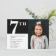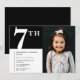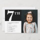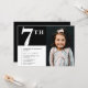 Invitación elegante de cumpleaños número 7 Black Chic Caligrafía moderna tipografía clásica elegante niña