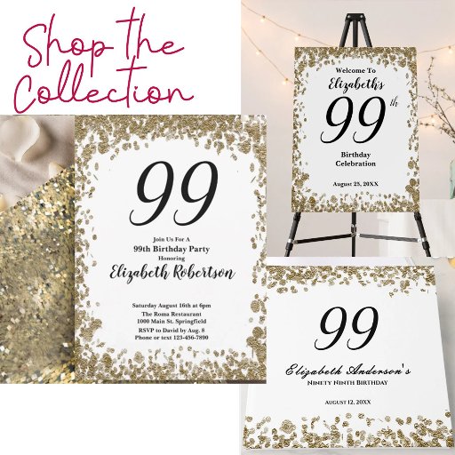 99th Birthday Gold Glitter GlamDiseñado por Kara Buntin