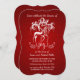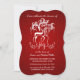 Reno blanco hermoso con las astas de lujo del remolino en fondo rojo festivo. Manera brillante y alegre, sofisticada y elegante de celebrar vacaciones de invierno felices y de compartir el feliz alcohol de la estación con los amigos y la familia. el diseño No-religioso hace fácil modificar para requisitos particulares para el entretenimiento casual de un negocio en casa o más formal/de acontecimientos corporativos.