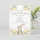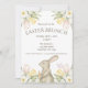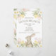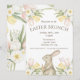 Invite a amigos y familiares a una cálida y acogedora celebración de Pascua con esta elegante invitación para un brunch de Pascua. Con un encantador conejo de acuarela rodeado de tulipanes pastel rosa suave, narcisos amarillos soleados y flores primaverales, este diseño se siente atemporal, suave y perfecto para la temporada.
