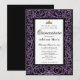 Esta elegante invitación de quinceañera tiene adornos con brillo morado impresos, una corona de tiara dorada, y un fondo negro con una plantilla personalizable para crear tu propio mensaje. La plantilla de invitación es personalizable en el editor de la lista y también está disponible como descarga digital que se puede imprimir después de personalizarla.