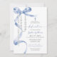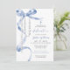 Invitación Elegante Dedicación Azul Bow & Rosary