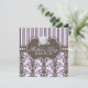 Esta invitación fija la etapa para un brunch elegante del día de madre que cualquier mamá está segura de amar. Un ramo dulce de hydrangeas púrpuras y rosados se ofrece con un damasco elegante de la lila marrón y suave de la moca y el modelo púrpuras de la raya, creando un diseño precioso con una sensación francesa que se quepa para un brunch elegante.